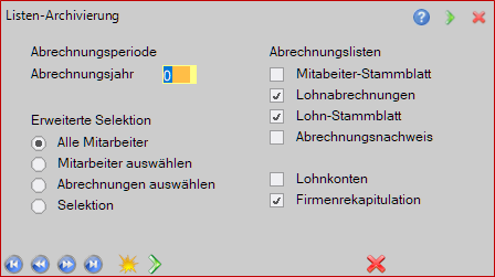 Im Menupunkt Listen-Archivierung stehen Ihnen weitere Listen und Auswertungen zur Archivierung zur Verfügung: