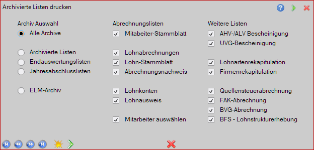 Im Menupunkt "Archive verwalten" stehen Ihnen alle archivierten Listen und Auswertungen zur Verfügung. Diese können eingesehen, gedruckt, kopiert oder gelöscht werden.