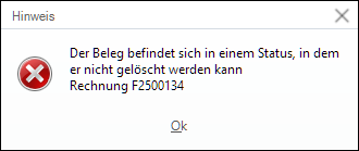 Die Belege können bestimmte Stati haben, bei denen es nicht erlaubt ist, sie zu ändern. Dann wird folgendes Fenster angezeigt: