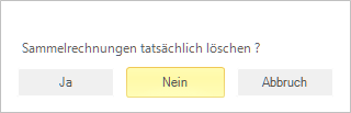 Wenn Sie die Frage positiv beantworten, werden alle Sammelrechnungen des Generierungslaufes gelöscht. Das Protokoll selbst bleibt erhalten.