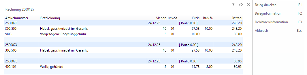 Sammelrechnung drucken F3