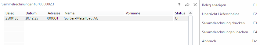Sammelrechnungen löschen F4