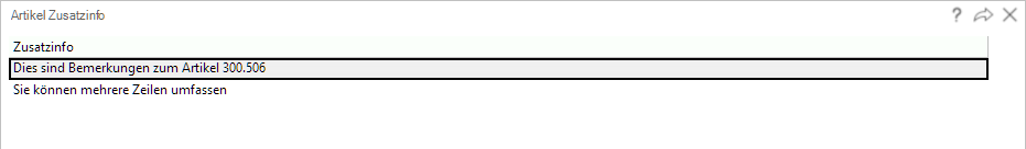 Es existieren mehrere Arten von Textzeilen und Eingabemöglichkeiten. Eine weitere Bezeichnungszeile zu einem Artikel oder einer Dienstleistung wird als manueller Artikel eingegeben und ist dort beschrieben. Die Wahl der Texte erfolgt über die Funktionstaste 'F4'.