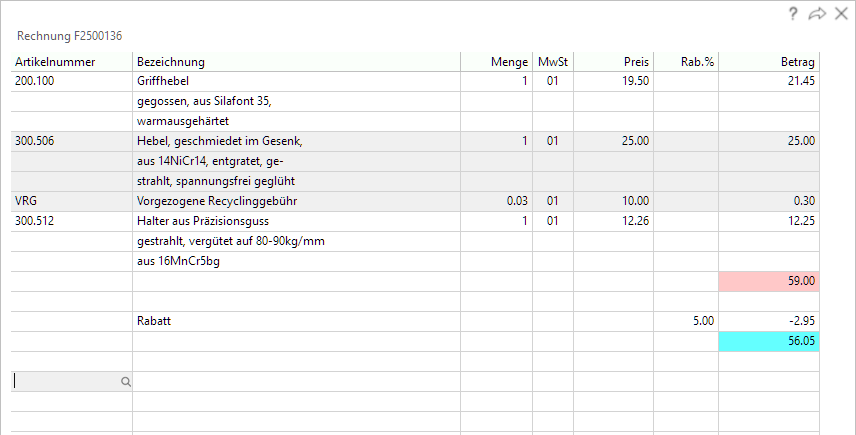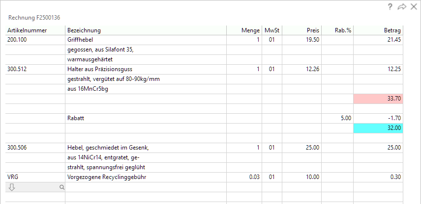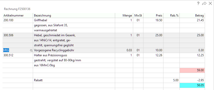 | Artikel: | Alle Artikelzeilen (ausser Bestandteile von Strukturen) erhalten neue Positionsnummern. |