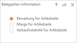Hier wird die Marge für die aktive Zeile sowohl als Betrag als auch als Prozentsatz angezeigt.