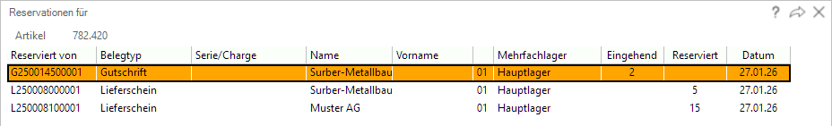 Wenn man Shift+F8 drückt, erscheint ein detailliertes Übersichtsfenster für alle Reservationen dieses Artikels. Siehe auch weiter unten.