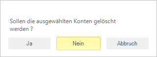 Haben Sie alle Konten angewählt die Sie löschen möchten, betätigen Sie die Eingabetaste 'Enter'. Nun erscheint eine Sicherheitsabfrage, welche Sie positiv beantworten sollten, um die Konten zu löschen: