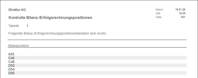 Findet das Programm Konten, die keiner Position oder einer nicht vorhandenen Position zugeordnet sind, so werden sie auf einer Liste ausgegeben.