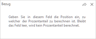 Die Beträge der Position können ins Verhältnis (Prozent) zu einer anderen Position gesetzt werden. Diese Bezugsposition ist hier einzugeben.