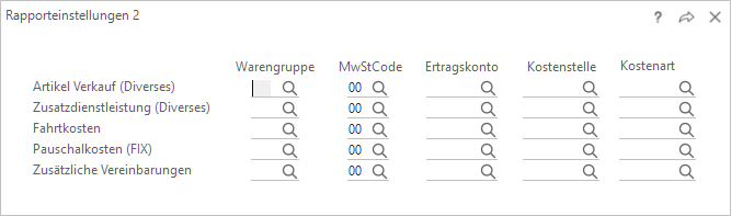 Artikel Verkauf (Diverses): Hier geben Sie die Informationen für die Rapportposition MAN_1 ein.