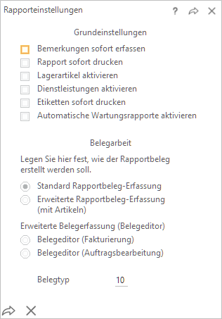 Automatische Wartungsrapporte aktivieren: Aktivieren Sie diesen Parameter, wenn anstelle von Calls für die Planung von Wartungseinsätzen direkt Wartungsrapporte generiert werden sollen. Die Wartungsrapporte können nicht eingeplant werden, sondern werden den Technikern direkt zugeteilt (z.B. bei einem wöchentlichen Briefing).