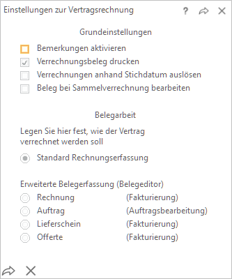 Beleg bei Sammelverrechnung bearbeiten: Mit dieser Einstellung bestimmen Sie, ob Sie noch Einfluss auf die einzelnen Verträge bei Sammelverrechnung nehmen wollen (aktiviert) oder nicht (nicht aktivert).