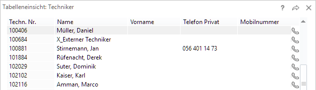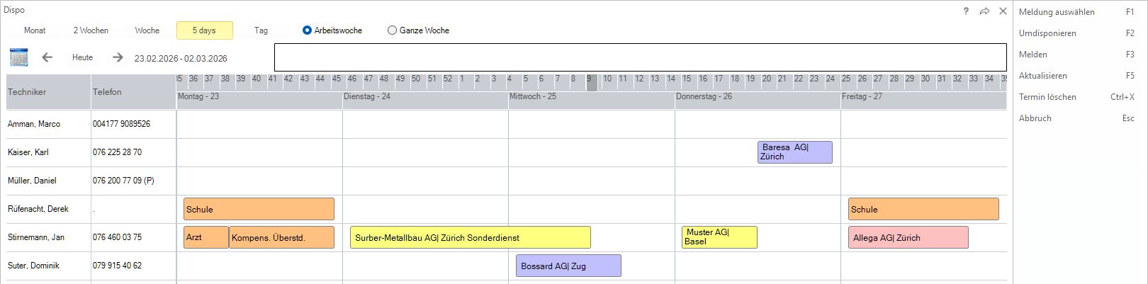 Ist eine Meldung disponiert, so ist er dem Techniker zugewiesen. Dieser muss seine Disposition nun noch bestätigen. Dazu wählt er seine Nummer aus (F1 für Übersicht aller Techniker / Ressourcen) und bestätigt diese.