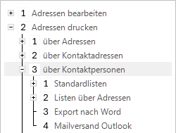 | (2) | können Sie bis zu zehn Listen über Adressen (02/061 bis 02/070) , bei denen die Adresse als Hauptdatensatz selektiert wird, ausgeben lassen. |