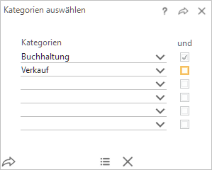 Wie im Kapitel Kategorien Kontaktadressen kann mit Hilfe eines Zusatzfensters eingestellt werden, welche Kategorien die Kontaktpersonen enthalten müssen.