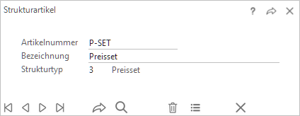 Die Anzahl der einzelnen Bestandteile wird automatisch berücksichtigt, d.h. bei einem Strukturartikel Auto mit vier Rädern wird der Preis eines Rades mit 4 multipliziert und zum Gesamtpreis addiert.