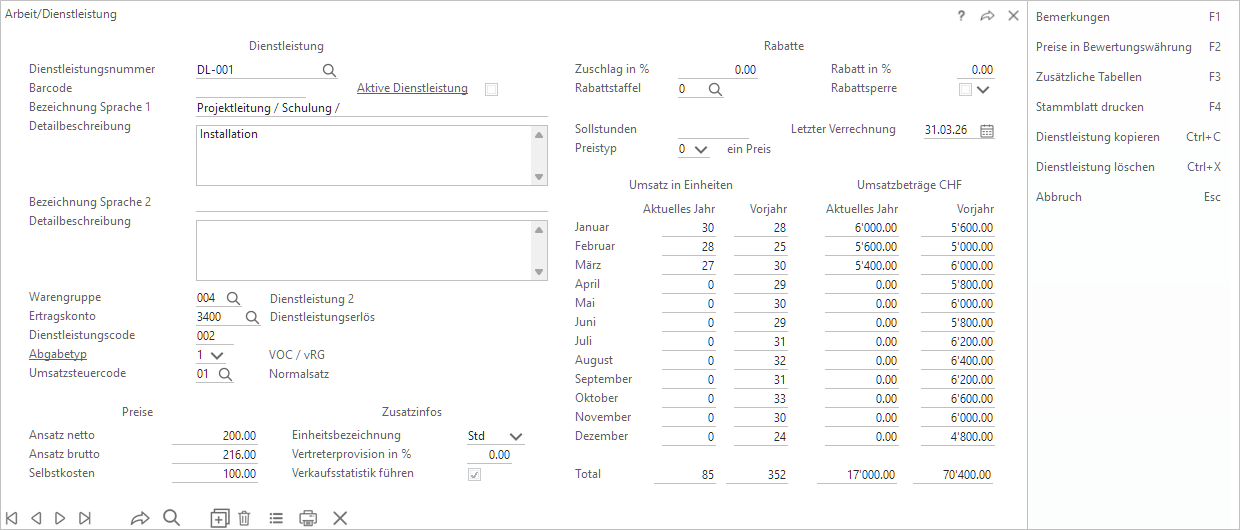 Die Beschreibung Dienstleistungen ist nur relevant, wenn im System-Menu/Einstellungen/System-Grundeinstellungen die Funktion Arbeiten mit Dienstleistungen aktiviert ist.