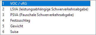 Abgabetyp: europa3000™unterstützt auch die Arbeit mit Artikeln, für die eine Lenkungsabgabe/VOC-Abgabe in der Schweiz erforderlich ist. Die notwendigen Lenkungsabgaben werden als Dienstleistungen definiert, weil für sie keine Lagerbuchung erforderlich sind. In den entsprechenden Artikeln tragen Sie die Dienstleistung für die Lenkungsabgabe hier und den Prozentsatz unter Anteil in % der Menge der DL ein. Für VOC= Volatile Organic Compounds (flüchtige organische Verbindungen; seit 1.1.2000 gesetzlich vorgeschrieben) nutzbar, aber auch für LSVA = Leistungsabhängige Schwerverkehrsabgabe (seit 1.1.2001) oder vRG = vorgezogene Recycling-Gebühr (seit 1.1.2003 zu erheben) oder mengenabhängige Zuschläge (Festzuschlag/Gewicht) . Hier legen Sie für den Dienstleistung fest, welche Abgabetyp verwendet wird.