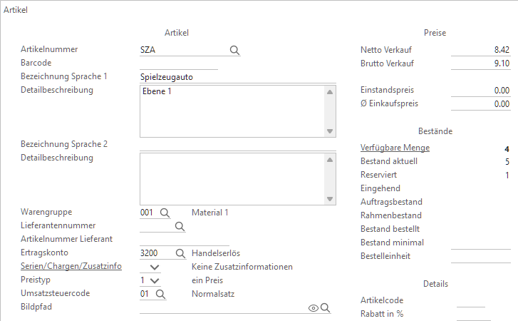 Sobald eine gültige Artikelnummer bestätigt ist, zeigt das Programm die Bezeichnung dieses Artikels an.