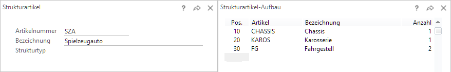 Sind alle Bestandteile definiert, ist der "Struktur"-Artikel zu erfassen und wird dann hier aufgerufen: